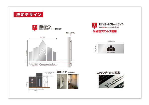 看板製作|文京区のオフィスの看板デザイン文京区のオフィス 様の < 看板デザインについて > お客様のご希望をお聞きし一緒にデザインを作り上げていきます。 今回は支給して頂いたロゴデータをもとにサインプランを考えご提案しました
